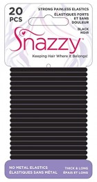 Snazzy Hair Elastics - Black, Thick & Long - Economy Pack, Painless 20 Count (1 Pack, 20 Ties Per Card)